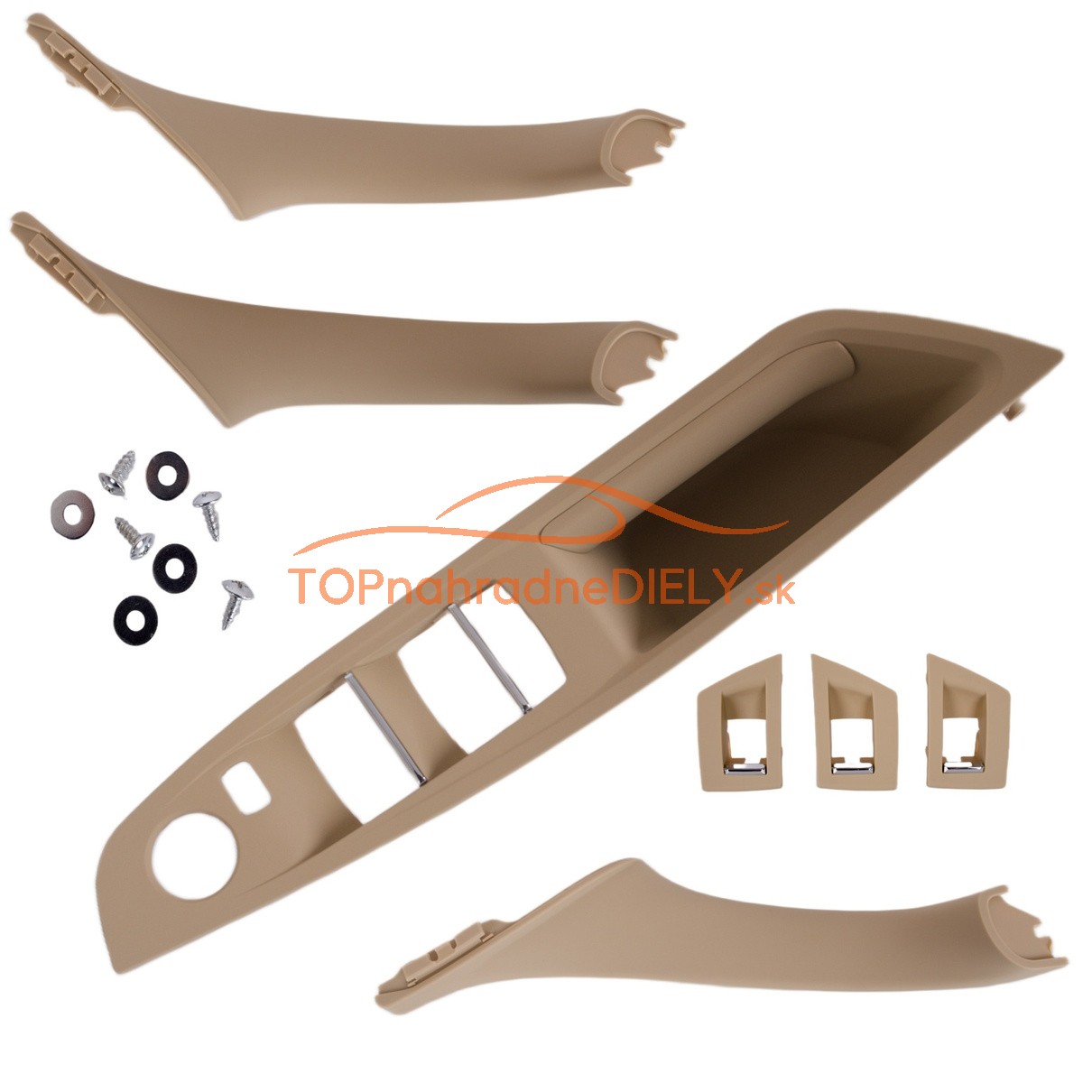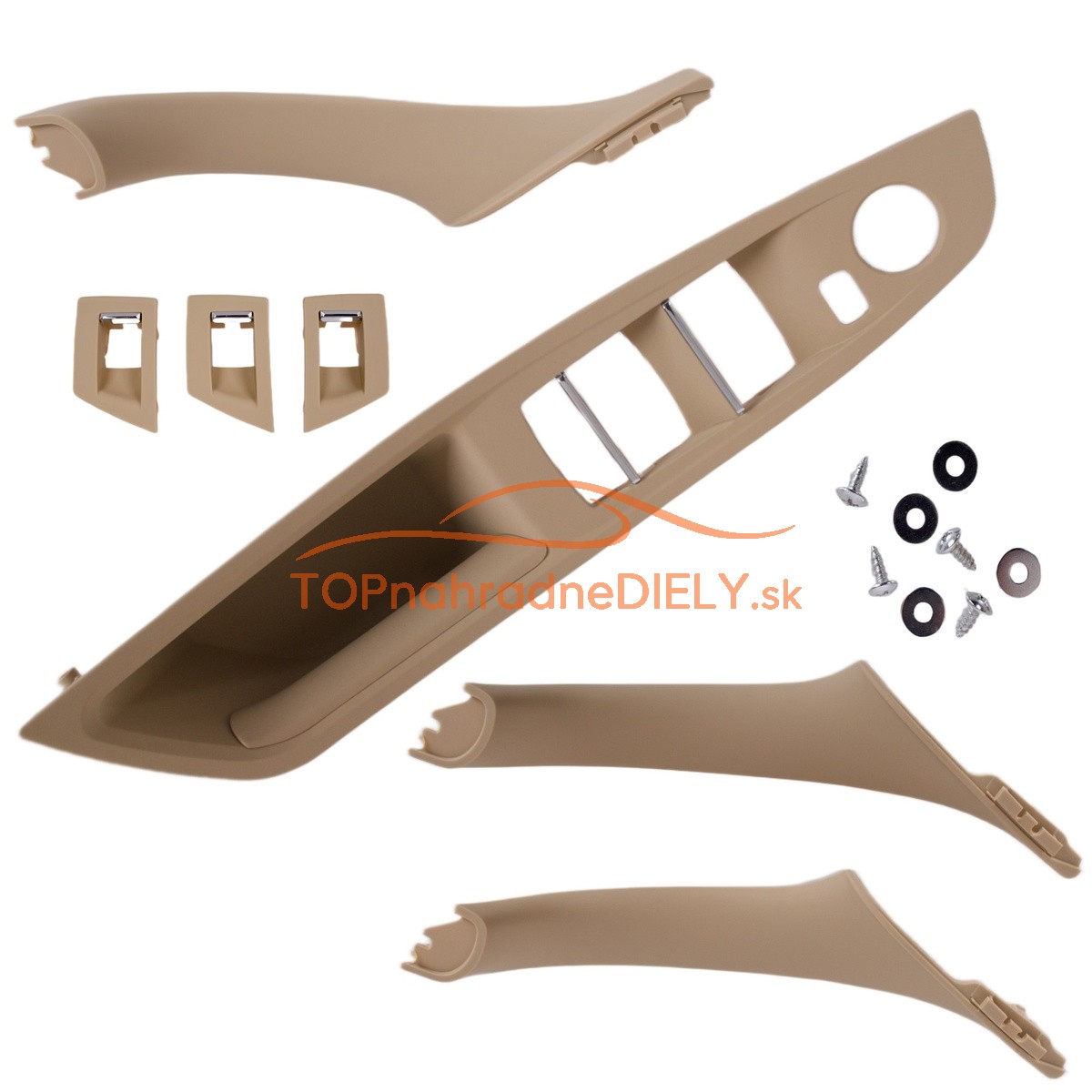 - Sada madla, rúčky, držiaky, úchyty predné vnútorné dvere, ľavá + pravá strana, BMW rad 5, 7 ks, béžová